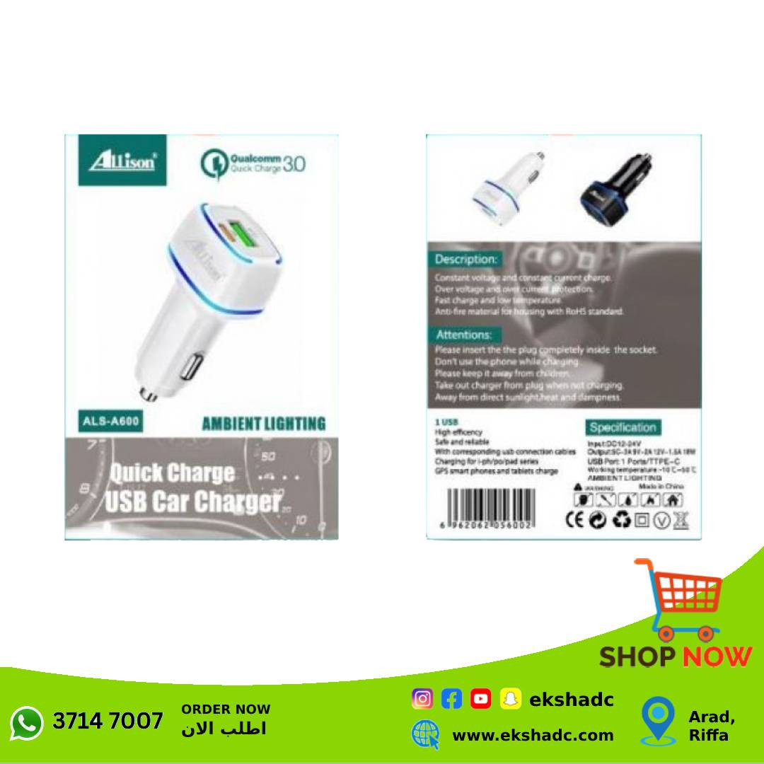 • Allison Car Charger • Elegant Attractive Design • High Quality Product • Fast Charging