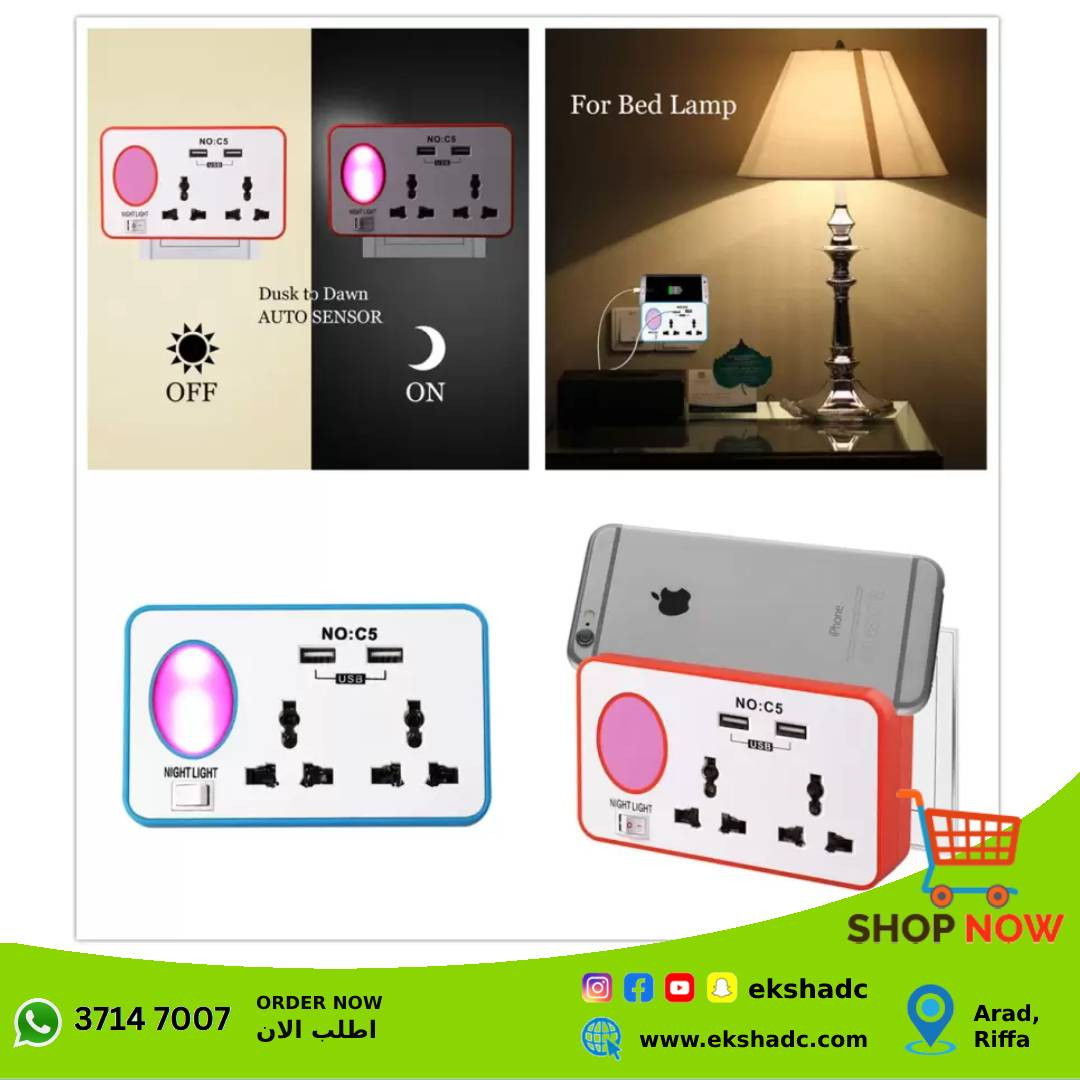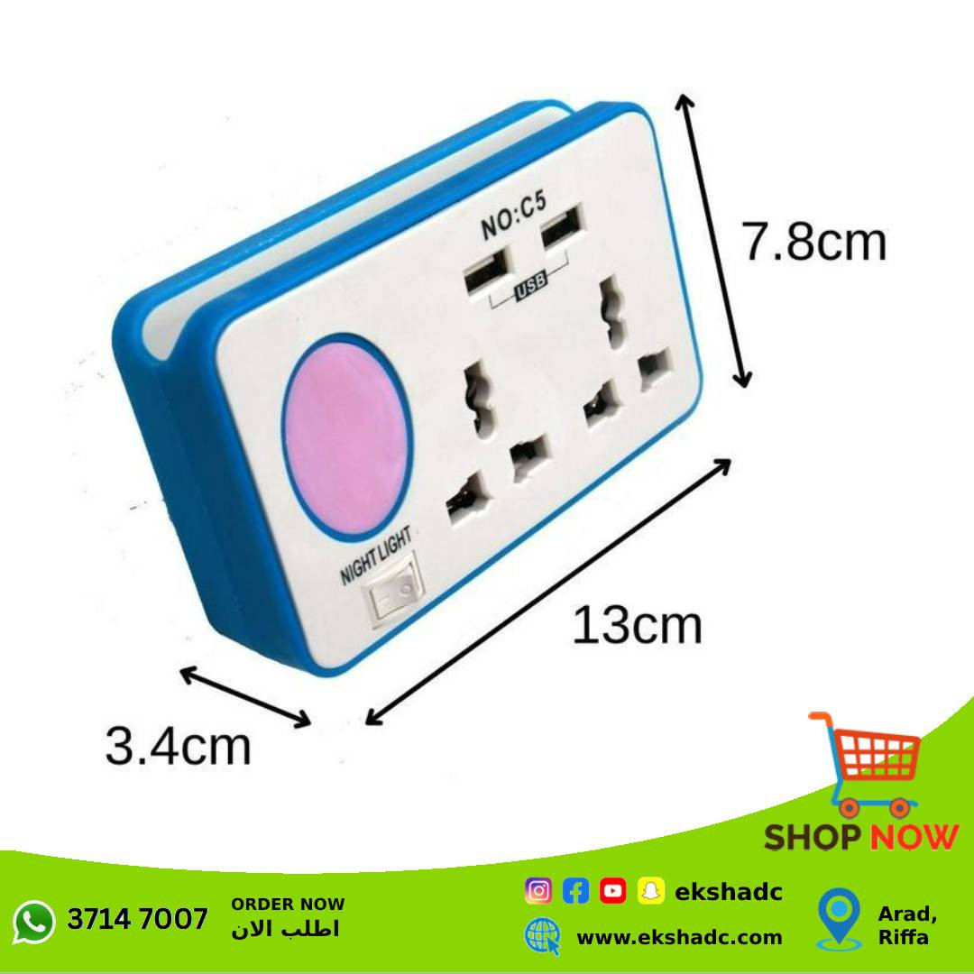 Eksha Discount Center brings you the best price for C5 USB Night Light Charger with Socket Blue with express shipping all over Bahrain.