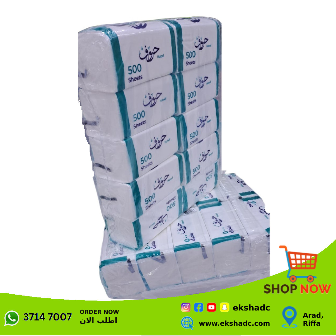 Eksha Discount Center brings you the best price for Huroof Face Tissue 500s with express shipping all over Bahrain.